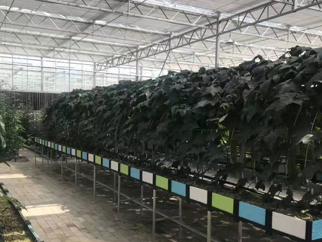 3)浮板毛管栽培技术:采用栽培床内设浮板湿毡的分根技术,为培养湿气根创造丰氧环境,解决水气矛盾;采用较长的水平栽培床贮存大量的营养液,有效地克服了NFT的缺点,作物根际环境条件稳定,液温变化小,不怕因临时停电而影响营养液的供给。