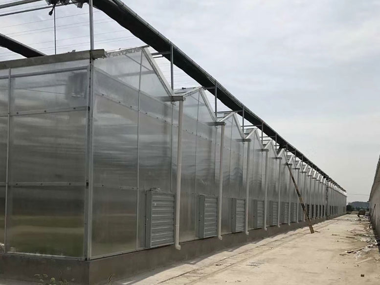 阳光板温室覆盖材料--聚碳酸酯中空板(PC板)与其它覆盖材料相比,具有采光好、保暖、轻便、防结露、抗冲击、PC板材料只融化不扩展,在高温度下,有良好的阻热性、经济耐用、安装使用过程中不会断裂或破碎,适应性强和安全性等诸多优点,该板的向阳面具有防紫外线涂层,内面具有防集露等功能。由其覆盖材料的温室,使用时间长,外观优良、结构稳定,形式美观大方,视觉流畅,保温效果好,冬季运营成本低。